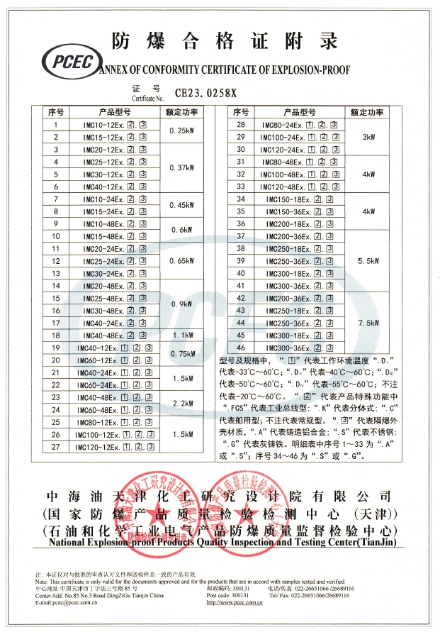 IMC系列技術(shù)參數(shù)表