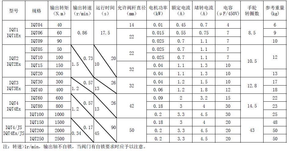 IQT1~IQT4/JS(220V單相電機)系列技術(shù)參數(shù)表