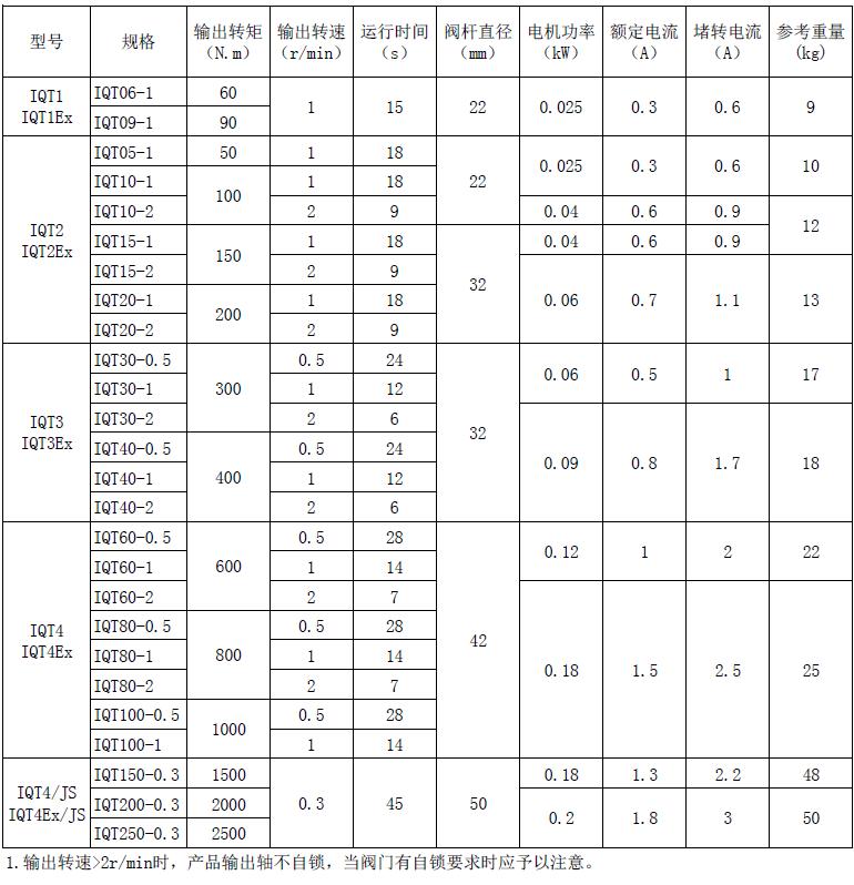 IQT1~IQT4/JS(380V三相電機)系列技術(shù)參數(shù)表