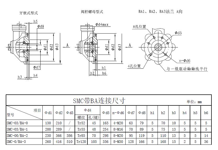 SMC/BA系列電動(dòng)裝置是SMC系列中小轉(zhuǎn)矩多回轉(zhuǎn)電動(dòng)裝置與BA圓錐齒輪減速器的一種組合型式,它適合閘閥、截止閥等多回轉(zhuǎn)閥門的驅(qū)動(dòng)控制。SMC/BA電動(dòng)裝置具有以下特點(diǎn):以較小轉(zhuǎn)矩規(guī)格的SMC電動(dòng)裝置與BA減速器組合可獲得更大的輸出轉(zhuǎn)矩。在輸出轉(zhuǎn)速允許的條件下,選用該產(chǎn)品能夠提高所選電動(dòng)裝置規(guī)格的通用性,便于產(chǎn)品的使用、維護(hù)。