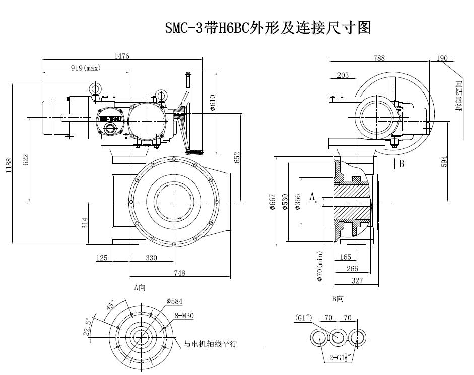 SMC/HBC系列電動(dòng)裝置是SMC系列多回轉(zhuǎn)電動(dòng)裝置與HBC蝸輪減速器的組合型式,它適合球閥、蝶閥等部分回轉(zhuǎn)閥門的驅(qū)動(dòng)控制。SMC/HBC電動(dòng)裝置具有以下特點(diǎn):結(jié)構(gòu)設(shè)計(jì)堅(jiān)固可靠,產(chǎn)品規(guī)格齊全,驅(qū)動(dòng)轉(zhuǎn)矩范圍大且動(dòng)力輸出穩(wěn)定, 具有良好的自鎖性能。 HBC輸出軸結(jié)構(gòu)獨(dú)特,裝有與閥桿連接的漸開線花鍵接頭,產(chǎn)品的安裝調(diào)試方便。
