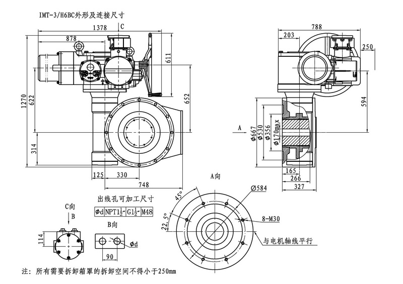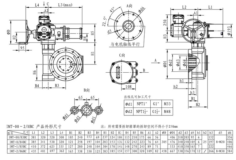 IMT/HBC系列智能型電動(dòng)裝置是IMT系列多回轉(zhuǎn)智能型電動(dòng)裝置與HBC蝸輪減速器的組合型式,它適合球閥、蝶閥等部分回轉(zhuǎn)閥門的驅(qū)動(dòng)控制。 IMT/HBC智能型電動(dòng)裝置具有以下特點(diǎn):結(jié)構(gòu)設(shè)計(jì)堅(jiān)固可靠,產(chǎn)品規(guī)格齊全,驅(qū)動(dòng)轉(zhuǎn)矩范圍大且動(dòng)力輸出穩(wěn)定, 具有良好的自鎖性能。 HBC輸出軸結(jié)構(gòu)獨(dú)特,裝有與閥桿連接的漸開線花鍵接頭,產(chǎn)品的安裝調(diào)試方便。