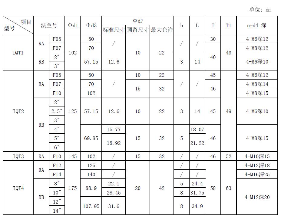 IQT1~IQT4/JS(220V單相電機)系列技術參數(shù)表