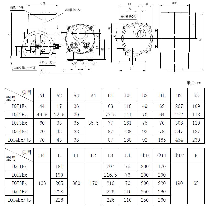 IQT1~IQT4/JS(380V三相電機)系列技術參數(shù)表