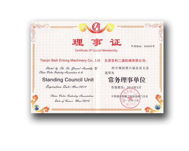 China Valve Association Standing Council Unit