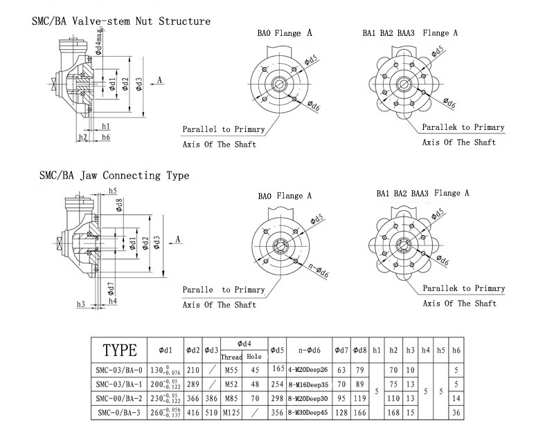 SMC/BA series, the combination of SMC series and BA cone gear reducer, are small and medium size multi-turn valve electric actuators. They are used to drive multi-turn actuators such as gate valve and stop valve. Through the combination of SMC series and BA cone gear reducer, customers can get bigger output torque. On the allowable condition of output speed, this series can improve actuators' generality so that can be used and maintained easily.
