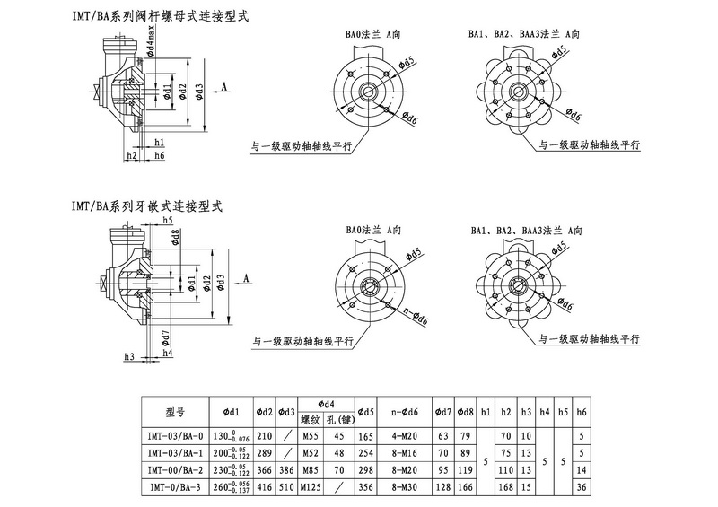 IMT/BA系列牙嵌及閥桿螺母連接尺寸