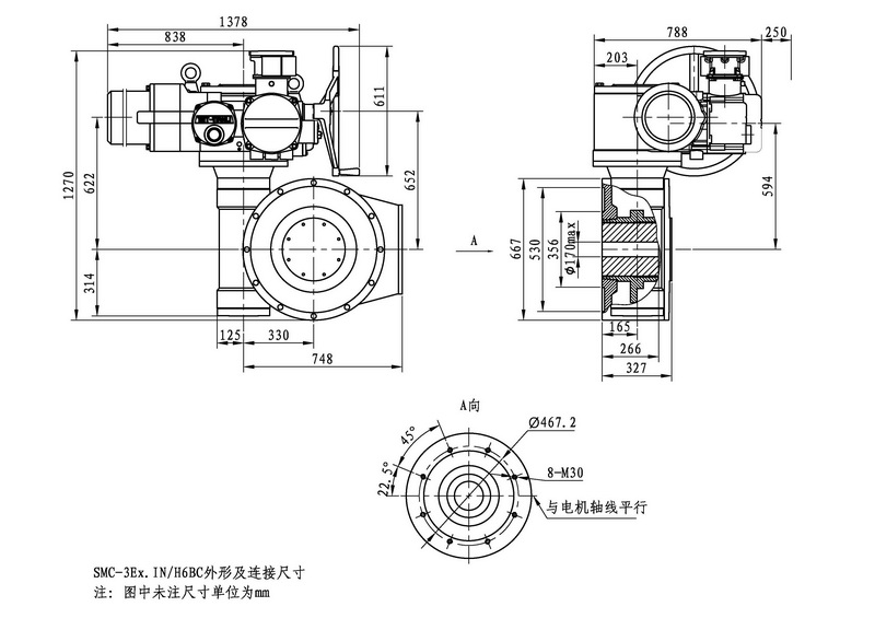 SMC/HBC系列電動(dòng)裝置是SMC系列多回轉(zhuǎn)電動(dòng)裝置與HBC蝸輪減速器的組合型式,它適合球閥、蝶閥等部分回轉(zhuǎn)閥門(mén)的驅(qū)動(dòng)控制。SMC/HBC電動(dòng)裝置具有以下特點(diǎn):結(jié)構(gòu)設(shè)計(jì)堅(jiān)固可靠,產(chǎn)品規(guī)格齊全,驅(qū)動(dòng)轉(zhuǎn)矩范圍大且動(dòng)力輸出穩(wěn)定, 具有良好的自鎖性能。 HBC輸出軸結(jié)構(gòu)獨(dú)特,裝有與閥桿連接的漸開(kāi)線花鍵接頭,產(chǎn)品的安裝調(diào)試方便。