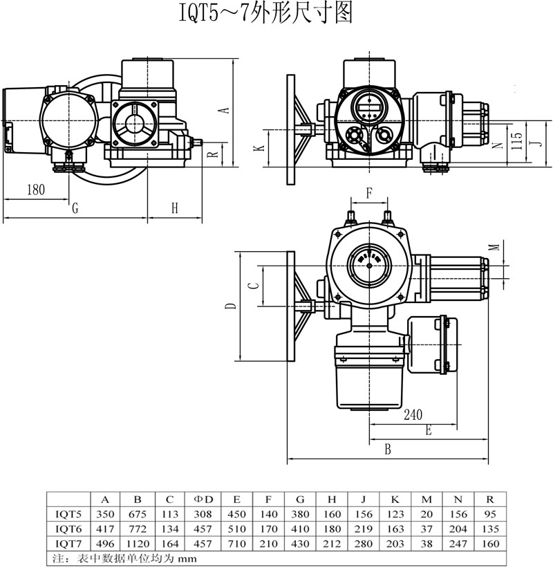 IQT系列智能型電動執(zhí)行機(jī)構(gòu)是我公司最新研制的具有完全自主知識產(chǎn)權(quán)的新一代智能化控制產(chǎn)品。其采用超大規(guī)模的模擬和數(shù)字混合集成芯片進(jìn)行設(shè)計(jì),組成SOC系統(tǒng)。使得精確控制與高性能實(shí)現(xiàn)完美結(jié)合,其中設(shè)置的功能涵蓋了用戶對此執(zhí)行機(jī)構(gòu)的所有技術(shù)要求。IQT系列為部分回轉(zhuǎn)型,輸出轉(zhuǎn)矩范圍50N.m~12000N.m。